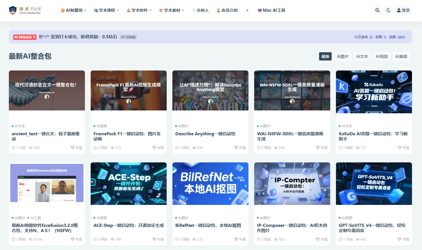 学术FUN是个一站式AI工具、资料、课程资源平台。提供Manus、DeepSeek、DeepSeek R1、AI换脸、人工智能大模型、AI绘画、虚幻引擎、数字人、学术海报、ChatGPT、Udemy、facefusion等AI课程及整合包下载。